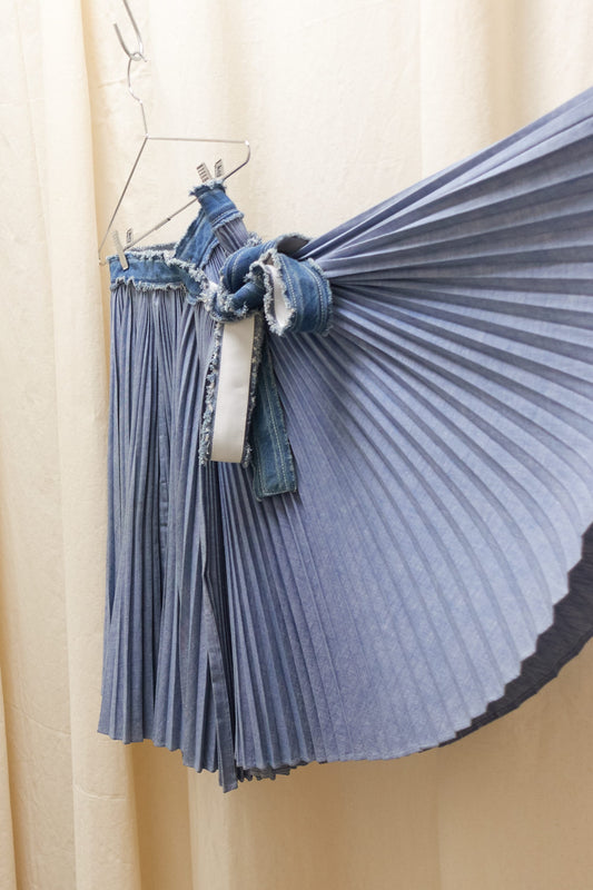 Sacai pleated denim wrap skirt