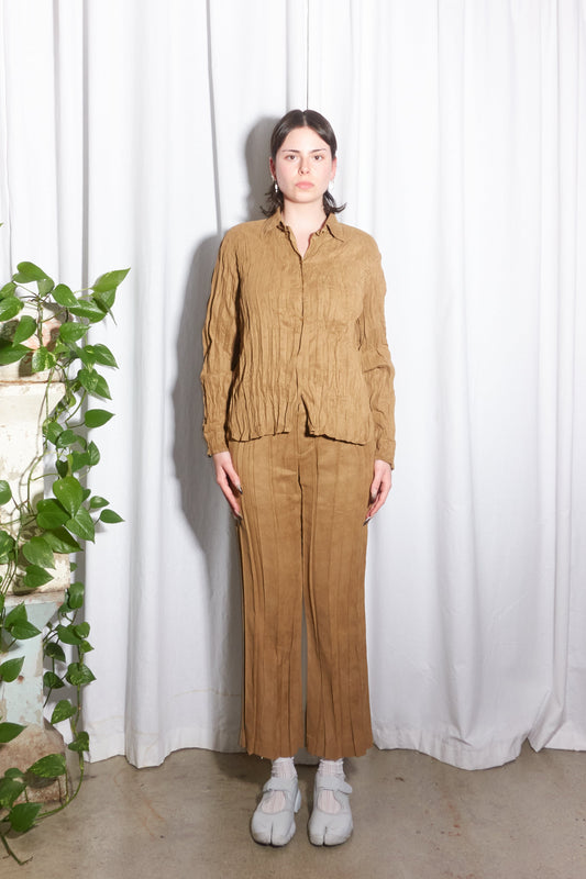 Issey Miyake white label faux suede crinkle shirt pant suit