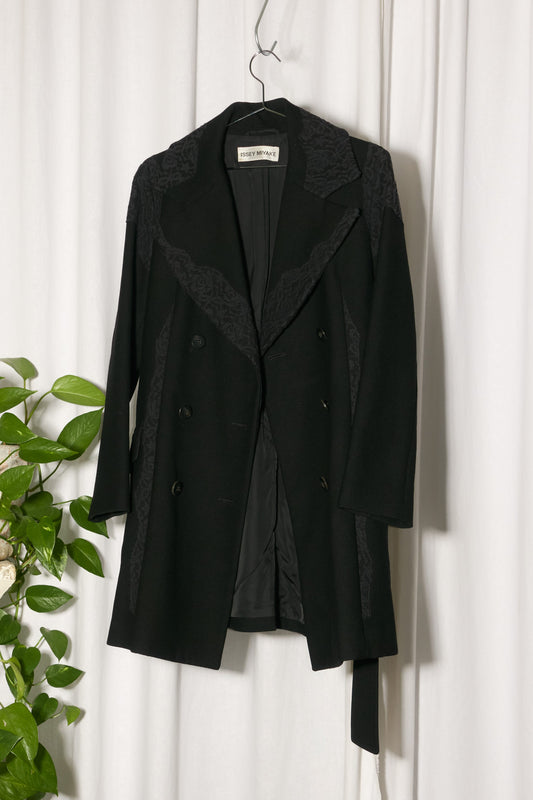 • Issey Miyake 2005 black wool lace double breasted coat